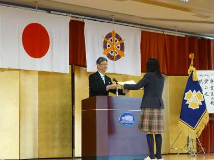 平成24年度 第7回卒業式が挙行されました。卒業生,ご家族の皆様,ご卒業おめでとうございます! 厳かなうちにも心温まる,すばらしい卒業式となりました。「進取・敢為・独創」の校是のもと,この3年間でたくましく成長された卒業生の皆さん,高校でも「社会人力」をしっかり育み,将来,社会に貢献できるグローバルリーダーをめざしてください。