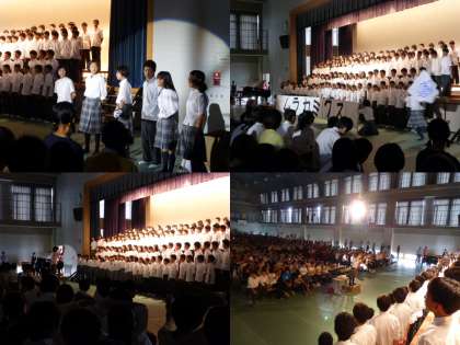 そして中学1年生による合唱。すごい盛り上がりでした。途中から会場全員が立ち上がり手を振ってのパフォーマンス。まさに会場が一体となり西京祭を楽しんでいました。中高一貫校ならではの雰囲気だったと思います。