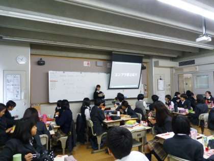 本日昼食時に、高校生の先輩方が標記イベント「エンプラ祭」の案内のために各教室に来て、プレゼンテーションしてくれました。