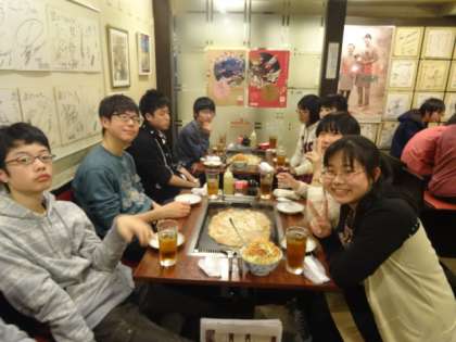 夕食は、月島にて、もんじゃ焼きに挑戦! 上手に焼けたかな!?