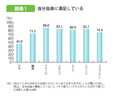 大変興味深い報告の中でも、まず目をひいたのが【1】自己認識・(1)自己肯定感の結果です。上の図表1をご参照ください。