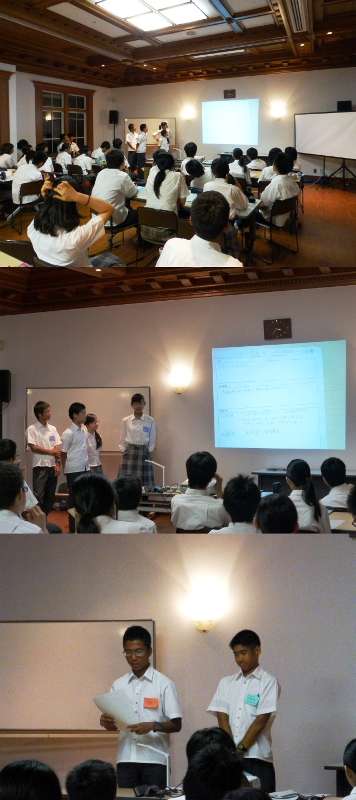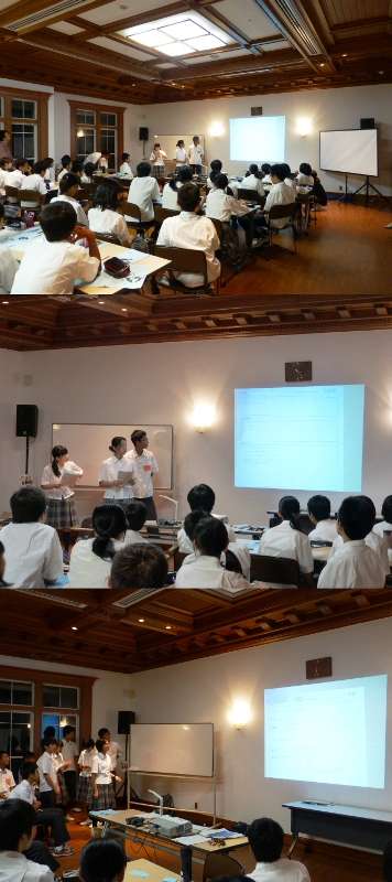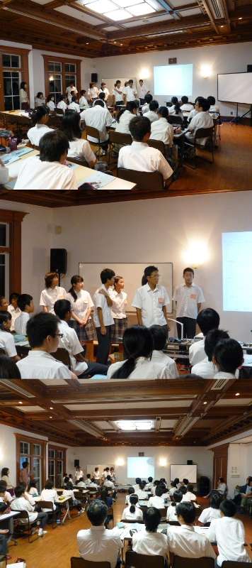 各グループが全体の前で発表をおこないました。各自で知恵を出し合った企画をプレゼンします。これだけの短時間にもかかわらずよくまとまっていたと思います。今後も継続して討議して欲しい内容でした。生徒会本部を中心に、よろしくお願いします。