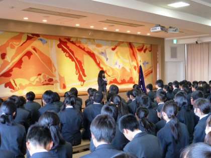 そして新本部役員の認証を選挙管理委員長がおこない、新生徒会長のM.M.さんによる新学級委員の認証へと続きました。特に、新生徒会長が挨拶の中で語ってくれた今後の抱負では、これからの西京生のあるべき姿をしっかりと打ち出してくれたと思います。頑張ってくださいね!