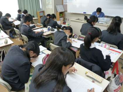 今日の午後、テスト前の2年生の授業を覗いてみました。普段とさして変わらないようにも見えましたが、やはりどことなく「ピーン」と張り詰めたような緊張感がうかがえます。