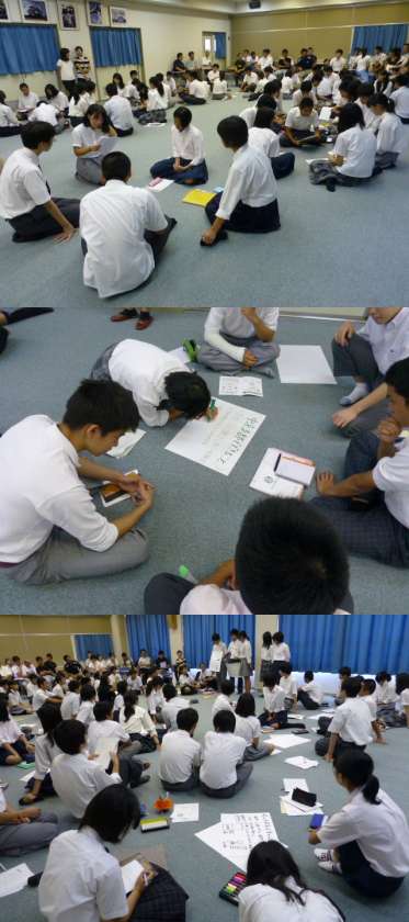 本日8月17日(月)北野中学校にて中京支部生徒会交流会が行われました。まず、グループにわかれて、自己紹介を行い、各校の生徒会活動の紹介がありました。