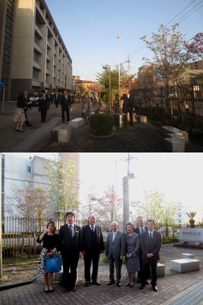 先生は平成21年に「京都賞」を受賞なさった際に,本校において中学・高校生に対して記念講演を行って下さいました。その折に準備や当日の進行に当たった生徒実行委員の働きぶりをお褒め下さり,生徒たちへの激励になればと,翌22年,このオブジェをメモリアルガーデンに設置して下さったものです。