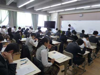 本日、3年生が、全国学力学習状況調査に臨みました。今年度は、国語・数学の2教科において、基礎的な知識を問うA問題と活用力を試すB問題に分けて実施されました。また、学習意欲や指導についてのアンケート調査もおこなわれました。