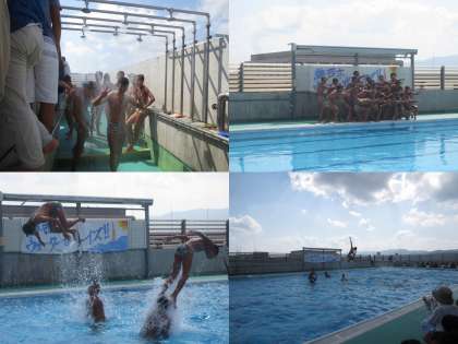 また、プールでは、高校水泳部、恒例の「ウォーターボーイズ」が、熱演をしてくれています。今年も大盛況です!