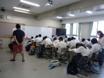 本校では、西京高校を卒業した大学生や大学院生が、チューターとして、毎日、放課後に、高校生からの質問に対応する、というチューター制度を取り入れています。附属中学校の土曜学習にも、毎回そのチューターの学生にボランティアとして、来てもらっています。