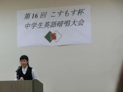 9月22日(祝)に開催された嵯峨野高等学校第16回「こすもす杯」中学生英語暗唱大会に3年生のN.Y.さんが出場し、聴衆の心に届く流暢な英語で発表することができました。審査の結果、優秀賞(京都府立嵯峨野高等学校長賞)を受賞しました。おめでとうございます。
