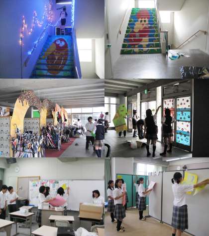 ご来校くださる保護者のみなさん,舞台発表や展示発表はもちろんのこと,すばらしい校内装飾も楽しみにしておいてください。