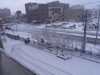 おはようございます。昨晩から雪が降り続き、本校もグラウンドや正門付近・御池通りも一面の銀世界になっています。