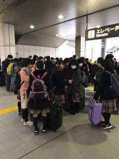 3年生の東京研修旅行,京都駅に集合,結団式を終えて出発しました。