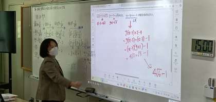本校の数学科授業では、対称性を意識した問題に取り組みました。「x+1/x」の値を活用し、巧みな式変形で解を導く」というテーマに、生徒たちは真剣に挑戦しました。解答を見れば納得できるものの、自力でたどり着くのは容易ではありません。そんな難問に、諦めることなく正面から向き合う姿が印象的でした。