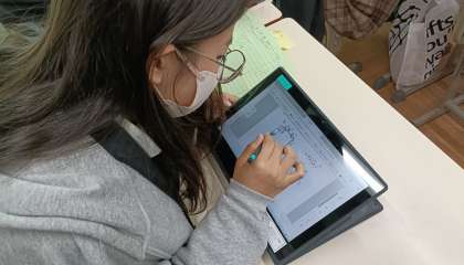 数学科の授業で正多角形の面積を求める問題に挑戦しました。単に結果を示すだけでなく、解答の過程を共有することで思考の流れをトレースし、理解を深めることを重視しています。しかし、40人全員の過程を確認するのは現実的ではありません。そこで今回は、AIがペンストロークを分析し、解答を分類。その分類を参考に、教師が取捨選択して授業で取り上げました。