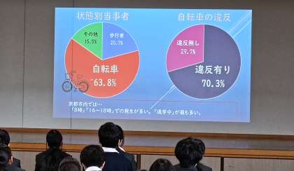 本日7限、教育委員会から講師の先生をお招きし、非行防止教室を行いました。講義では、いじめ問題、スマホ・SNSの危険性、自転車の事故、危険な薬物といった幅広いテーマについて、具体的な事例を交えながらお話しいただきました。