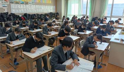 11月も最終日になりました。早いものです。今日は後期中間テスト2日目です。日ごろの努力の結果が、良い形で現れるといいですね。時折頭を抱えたり空を見上げたりしながらも、集中して取り組んでいました。