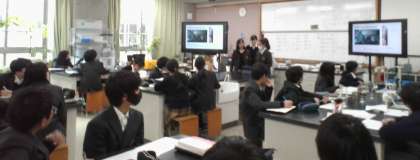気体の特徴や作り方について、班ごとに作成したパワポを用いて発表していました。単純な知識の伝達ではなく、実験で気をつけないといけないことなどポイントとなることを抑えた発表でした。スライドのまとめ方も、自分たちにとってわかりやすいだけでなく、観ている人にも伝わりやすくまとまっています。この1年間でずいぶんとプレゼン力が高まってきました。