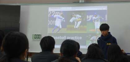 「自分や周りをよりよくする」をテーマに、生徒が主体的に課題を設定し、仮説を立ててアンケート調査を行いました。結果は図表を用いて英語で発表し、同じテーマでも異なる視点や工夫が見られ、互いに学び合う貴重な機会となりました。テーマには「第一印象をよくしたい」「チームワークを高めたい」「時間管理をうまくしたい」などがあり、発表後には調査方法の妥当性を振り返り、改善点を考える姿も印象的でした。これからも探究的な学びを通じて、課題解決に向けた思考力と表現力を育んでいきましょう。