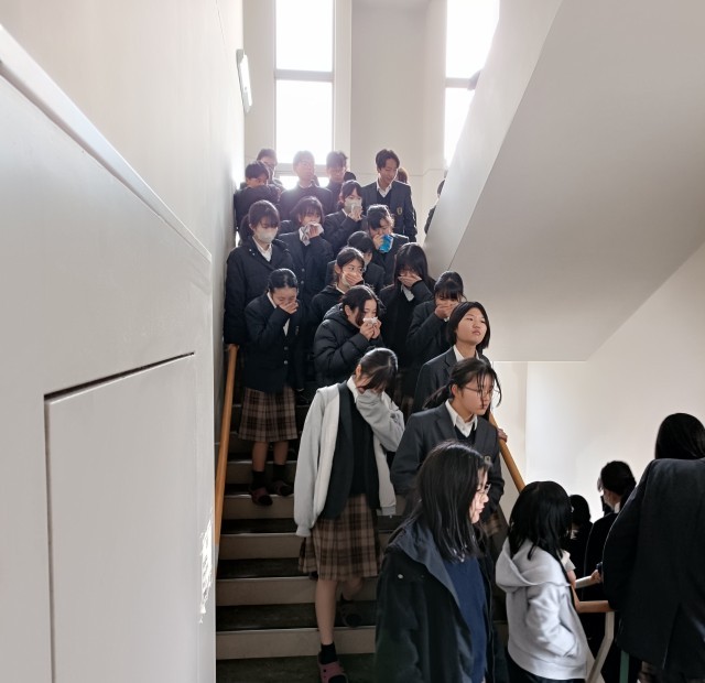 本日、本校では地震を想定した避難訓練を実施しました。1995年1月17日に発生した阪神・淡路大震災では、多くの家屋が倒壊し、火災が同時多発したことで甚大な被害が生じ、道路が寸断され救助が遅れた地域もありました。突然の災害が日常を奪う現実を知ることは、防災を考える大切な学びです。今日の訓練を通して、「自分の身を守る行動」を日頃から意識する重要性を実感できたのではないでしょうか。