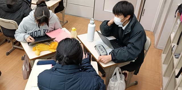 走れメロスを題材に、班で考える問いを絞り、根拠をもとに考える練習を行いました。個々で考えた「問い」を班で交流し評価し合います。十分に読み込んでいないと面白い「問い」は生まれません。そして面白い問いからはさまざまな面白い解が得られます。安直な問いから深い問いまで、班で吟味しながら問いの絞り込みを行いました。