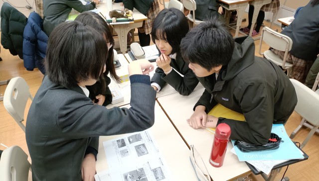 「電流がつくる磁界」に関する実験を行いました。コイルに電流を流すと、周囲に並べていた方位磁石が一斉に向きを変え、電流のまわりに磁界が生じる様子を目で捉えることができました。また、電流の向きを反転させると、磁界の向きも逆転し、方位磁石が新たな方向へそろって動き出しました。この変化の瞬間には、生徒から驚きの声が上がり、見えないはずの磁界が“確かに存在する”ことを実感していました。電流の向きによって磁界の向きが決まるという基本的な理論を、実際の観察と結びつけながら学ぶことで、生徒は理解をより深めることができました。理論と実験の両輪を押さえ、学びを進めていってください。