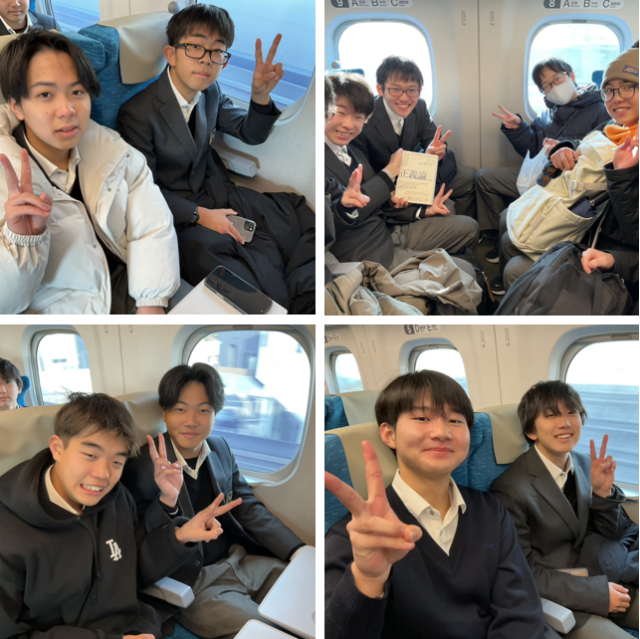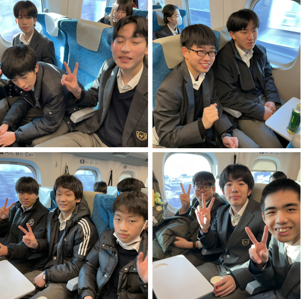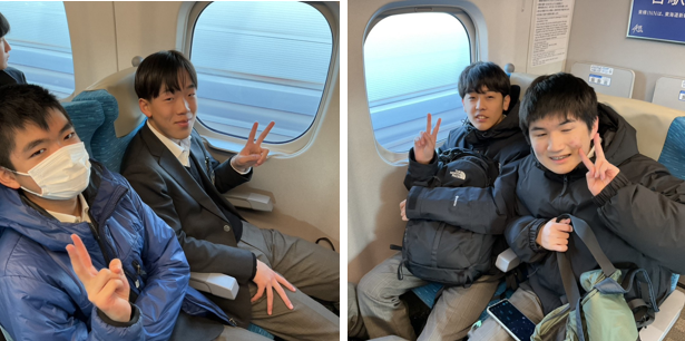 新幹線でも気持ちの高まりが抑えられない様子で、楽しそうに語らっています。教室での過ごし方と少し違って、仲間と新たな交流が進んでいるようです。旅の始まり、ワクワクしますよね。