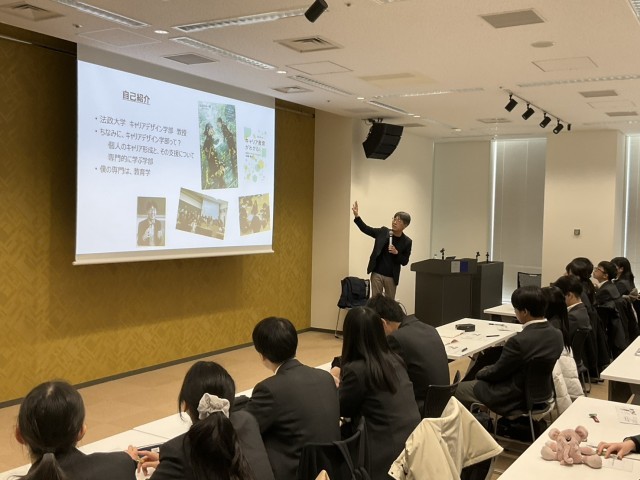 朝は児美川先生の講演会です。児美川孝一郎(こみかわ こういちろう)先生は、法政大学キャリアデザイン学部教授として、キャリア教育・青年期教育・教育政策を中心に研究・実践を続ける日本を代表する教育学者です。東京大学大学院で教育学を学んだ後、法政大学で教職課程センター長、教育開発支援機構長などを歴任し、日本教育学会理事や日本キャリアデザイン学会副会長も務めています。例年、本校の研修旅行では「キャリアデザイ」について講演いただいています。大学生にする講義の一部を中学生にもわかりやすく教えていただきます。最先端の学問としての生き方、キャリアの考え方に触れることができます。西京生として6年間の学びのその先を見据えることで、今すべきことが見えてくるのではないでしょうか。今日の講演を聞いた得た知見は必ず将来に役立ちますので、ぜひ心の隅にメモしておいてくださいね。