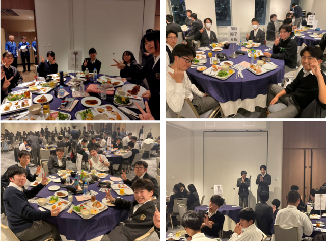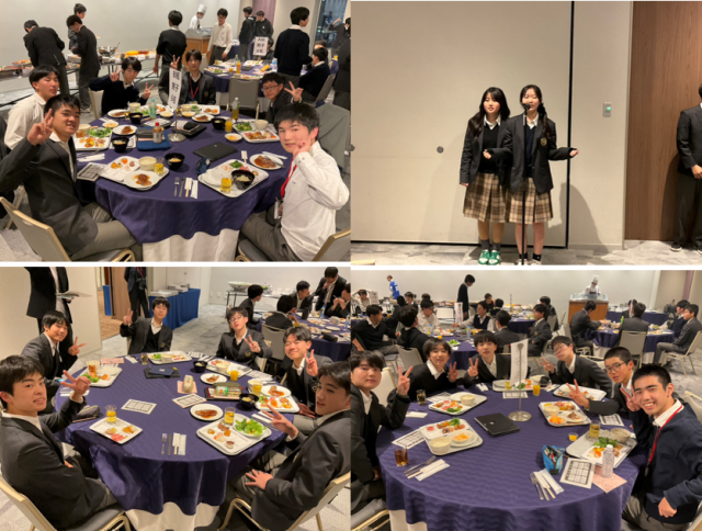 2日目の行程もひと段落し、ホテルでの夕食が始まりました。今日の班別研修では緊張の連続だったと思います。自分たちの仮説を最前線で活躍している企業人や官僚、大学人にプレゼンするのですから、事前準備だけでは心配の種は尽きなかったと思います。しかしそこは持ち前の明るさと西京エンプラ魂で乗り越えてきてくれた様子。皆さん、一定の疲れとともにやり遂げた表情です。研修旅行はまだまだ折り返しです。後半に向けよく食べよく寝て、明日以降に備えて下さい。