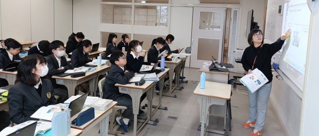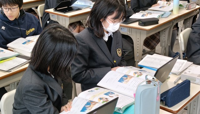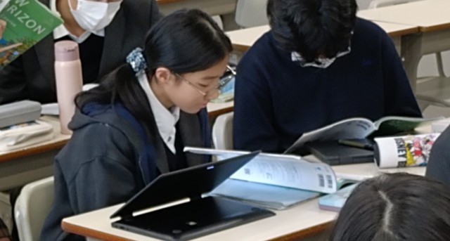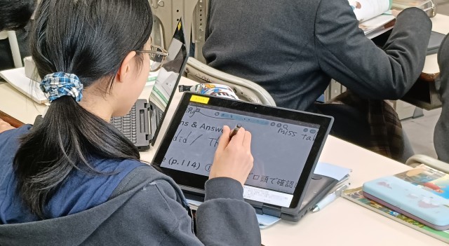 過去のことをたずねたり伝えたりすることをめざし、教科書を中心にお互いに問答を行いました。英文での質問に書き込むことはできても、友達の英語の質問に対し、英語で答えることにはまだ慣れていない様子でした。教科書の例文を参考に過去形の習熟を図ることができました。