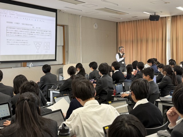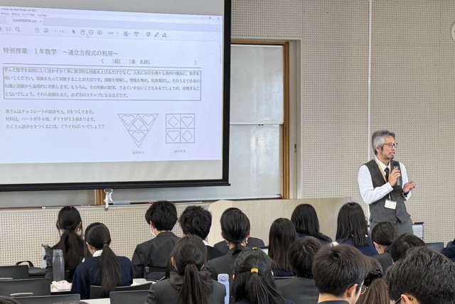 教頭先生による特別授業を受けました。今習っている連立方程式に関する問題でしたが、脳みそに汗をかくことはできましたか?バレンタインデーを意識したチョコレートの箱詰めの問題では、ハートやダイヤのチョコを箱に詰めるとき、箱の最大値を求めました。連立不等式を整数条件で求める形になり、試行錯誤が必要でした。大学数学における線形計画法につながる課題です。また後半では、3元連立方程式を条件が変わっていく中で解く問題でした。自分が導いた答えが本当に正しいのか。解の吟味や相手に伝わる説明の大切さを感じ取ることができれば今日の授業は成功です。噛めば噛むほど味のある至極の問題です。是非自宅で再度解きなおしてみてください。