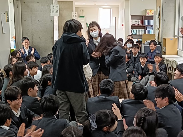 M7innovationtimeにおいて、企業とのやり取りを行いながらMissionに対する企画立案から提案まで取り組んできました。4月から20時間以上の授業以外に、各グループで準備を進めてきました。中間報告会をはじめ要所要所で、企画をブラッシュアップさせ、各グループともとても魅力的な提案に仕上がっていました。これをクエストカップ全国大会のコーポレートアクセス部門にエントリーをしていましたが、先日予選結果が発表されました。廊下に学年全員が集まり、学年主任の先生の発表に耳を傾けていました。佳作2作品と、全国大会への切符を得た優秀賞2作品が発表されると歓声が起きていました。皆さんご苦労様です。学年主任の先生の言葉にもあったように、120人全員で勝ち取った結果だと思います。選ばれたグループはこれからさらにブラッシュアップを重ね、全国で西京の取組を発表してきてください。