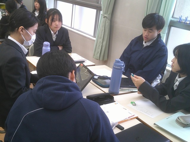 課題”京町家を未来に継承していくために、どのようなことをしていくとよいでしょうか”について、グループで話しあい、発表し、発表したことにコメントをいただきました。大学の建築学科で授業に盛り込む、SNSで発信、住宅の展示コーナーに京町家のことも入れるなど、いろいろな案がでてきました。