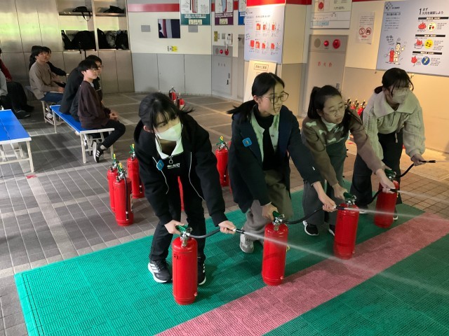 ⑥消火訓練と6つの体験を通して、防災に関する知識の習得や災害発生時の備えの重要性について確認しました。