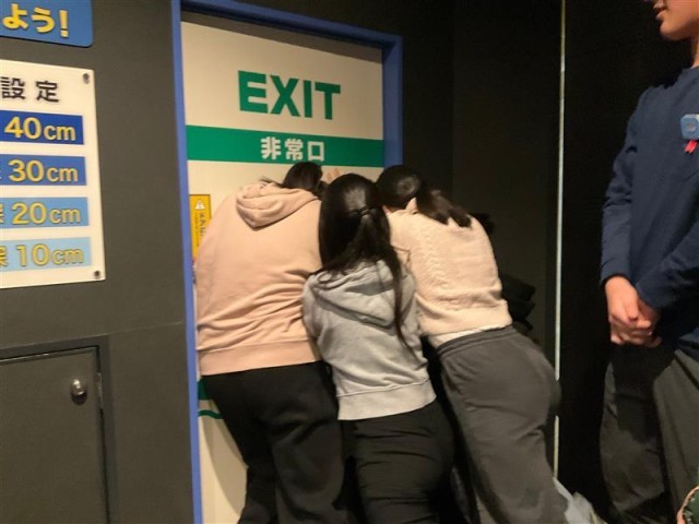 ①強風体験、②地震体験、③ゲリラ豪雨発生時の地下街体験、④土砂災害体験、⑤ホテルでの火災避難体験、
