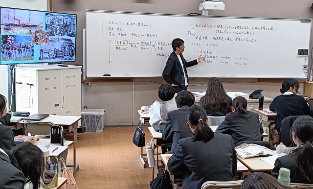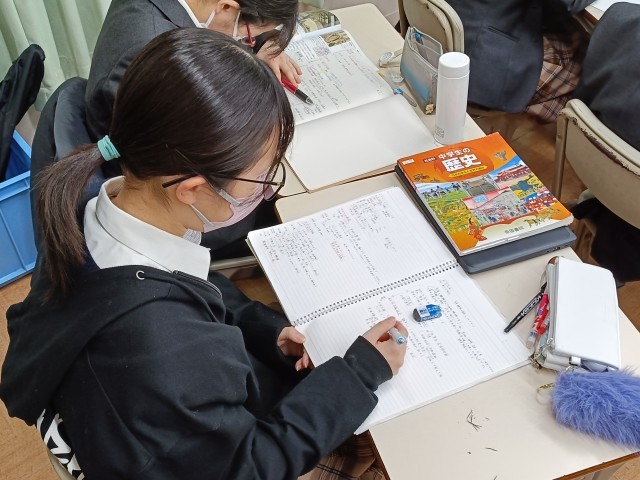 産業革命から社会主義と資本主義の違い、交通革命と歴史を学んでいきます。事実を知るだけでなく、その背景やその事実によって引き起こされた変化、未来とのつながりなど解説にみんな興味津々でした。生徒から出る鋭い質問への対応で、授業がスムースに進んでいました。みんな引き込まれていますね。