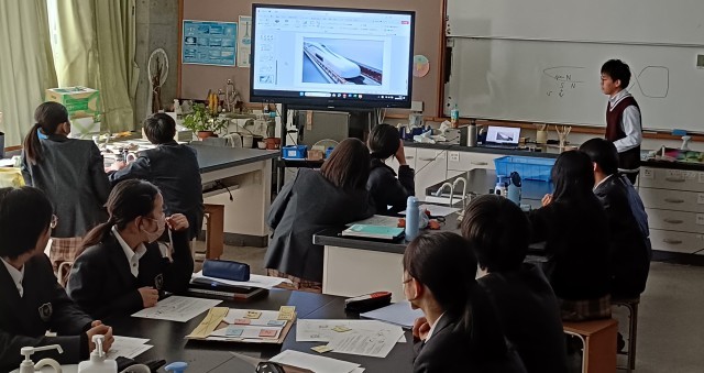 車輪を使わず電磁力だけで走行する技術に、生徒たちは強い興味を示し、教室で学んだ電磁誘導が最先端技術と結びつくことを実感する貴重な学びとなりました。
