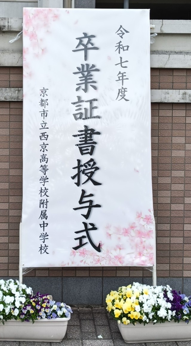 同級生のみんな。私たちは同じ時間を過ごし、同じ景色を見て、それぞれ違う思いを抱えながら今日まで歩いてきました。振り返ってみると、本当に楽しい思い出が、記憶の中から溢れでてきます。EP-Aの無理難題に頭を悩ませた日々、本番まで一生懸命に練習して美しい音色を生み出した音楽発表会、声が枯れるまで応援し、団を越えて盛り上がった西京祭体育の部。その全てがかけがえのないものとして心に残っています。三年間、本当にありがとう。みんなに出会えて、本当に良かった。「おはよう」と言ったら「おはよう」と返してくれるみんな。わからないことがあったら一緒に悩んでくれるみんな。いつも「ありがとう」を忘れないみんな。そんなみんながいてくれたからこそ、今の私たちがあります。四月からは高校生として、それぞれが人生の岐路に立つと思います。そんな時は、みんなと過ごしたこの三年間の思い出を胸に、自分が信じた道を歩んでいきましょう。