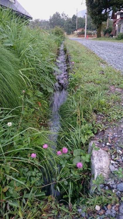空気がおいしく,きれいな水が勢いよく流れています。