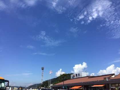 彦根城を遠目に、伊吹山の山頂を眺め、古戦場関ヶ原を通りとガイドさんの説明を心地よく聞いて、バスの旅を進めてます。道中は、大変天気がよく、秋空が広がってます。