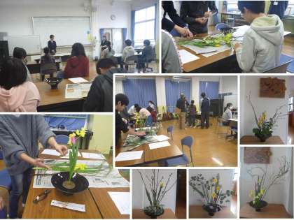 2月3日(月)に1・2年生は,翌日にある授業体験に参加される児童生徒のみなさんが,少しでも安心できる空間にと,花を生けました。