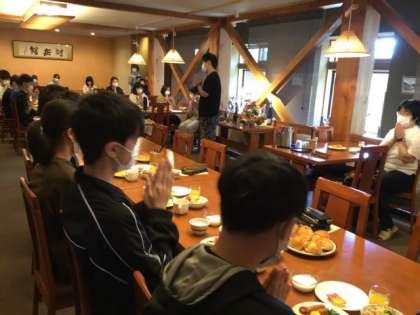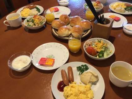 3日目の朝食の様子です。起床・朝の集いの後、レストランにて朝食をいただきました。本日もみんな元気にたくさん食べていました。この後、ホテルの方とのお別れの挨拶をし、紙すき体験場所へと移動していきます。