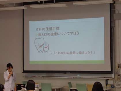 先日、わくわくスペースにて保健室の先生から「ほけんだより〜歯と口に関すること・熱中症予防に関すること〜を中心にお話をしてもらいました。6月は急に熱くなり、体が順応できない状態なので、熱中症にかかりやすくなるなどわかりやすく説明してもらいました。体調管理が難しい季節ですので、十分に注意していきましょう。