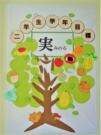 転入学生徒歓迎会で在校生から紹介のあった「洛風の誓い」をもとに,各学年で学年目標を決定し,下記のような掲示物が仕上がりました。
