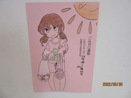 ポスターも作成しました。ウイングを2グループに分かれてみんな清掃活動に熱心に取り組んでいました。「きれいな街のほうが気持ちがいい」「けっこうお菓子の袋やペットボトルが落ちていた」等感想が聞こえてきました。これから壁新聞作成に入る予定です。