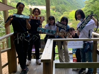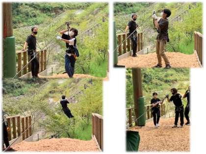 インストラクターさんの指示に従って、チームごとに挑戦。怖いと言っていた人もいましたが、無事ゴールまで頑張りました。