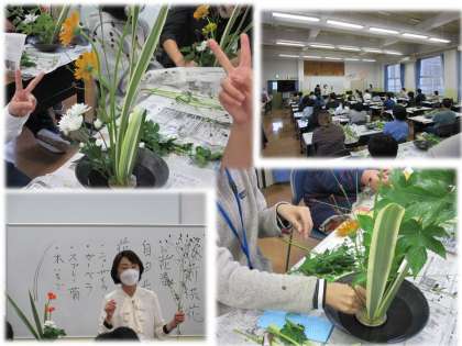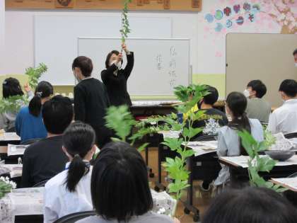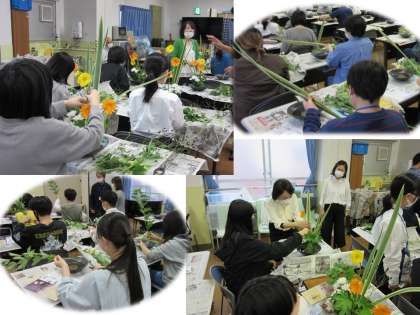 7日(金)午後、伝統文化体験のいけばなが行われました。池坊の講師の先生方に丁寧にお話しをいただきました。それぞれ楽しく取り組み、思い思いの作品となりました。