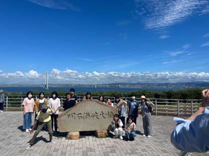 淡路サービスエリアで集合写真を撮りました。最高の天気です!みんなげんきです。