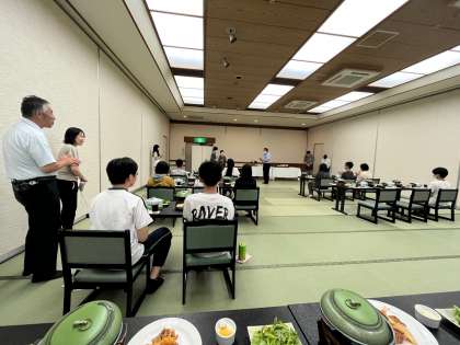 2日目のお宿、琴参閣に到着しました。広い温泉で疲れを癒し、みんなで夕食をとりました。美味しいお食事と楽しいおしゃべり。生活係さんから、今日の感想の突撃インタビューをしたところ、みんな口を揃えて『楽しかった!』と答えていました。最後の夜はレクリエーションはありませんが、部屋のみんなとの自由時間です。みんな楽しんでくださいね。