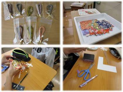 洛風中では、1・2年生が3年生にストラップを作成しています。
